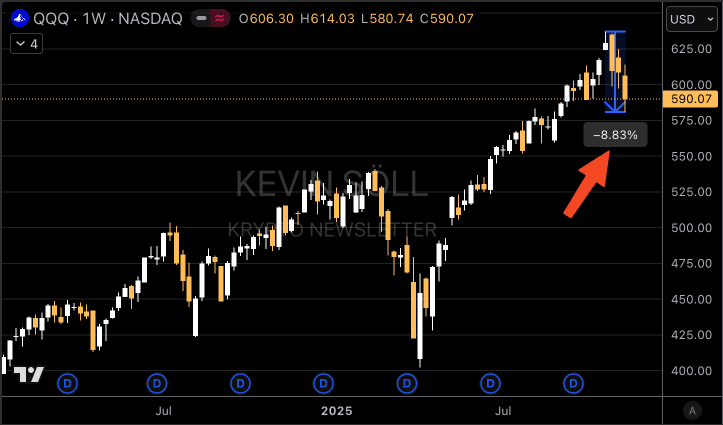 Das Interessante dabei? Der S&P 500 hat vom Top aus gerade mal um 6 % korrigiert – trotz all der Schlagzeilen zur potenziellen KI-Blase.