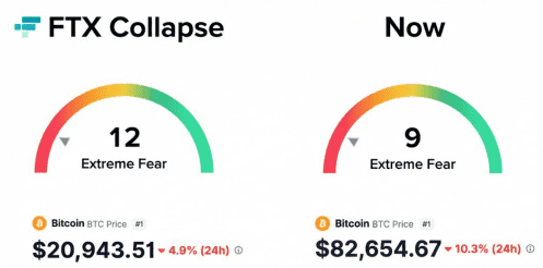 Das erklärt vermutlich unter anderem auch das Sentiment in den letzten Tagen: Es war noch bärischer als damals beim FTX-Crash.