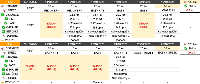 Das waren die ersten 2 von 26 Wochen Marathonvorbereitung, in denen ich meinen Trainingsplan nicht einhalten konnte.