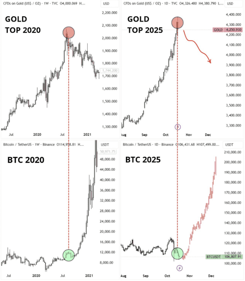 Da es zwischen Gold und BTC leider keinen kausalen Zusammenhang gibt, bleibt nur zu hoffen, dass es sich tatsächlich so ausspielt.