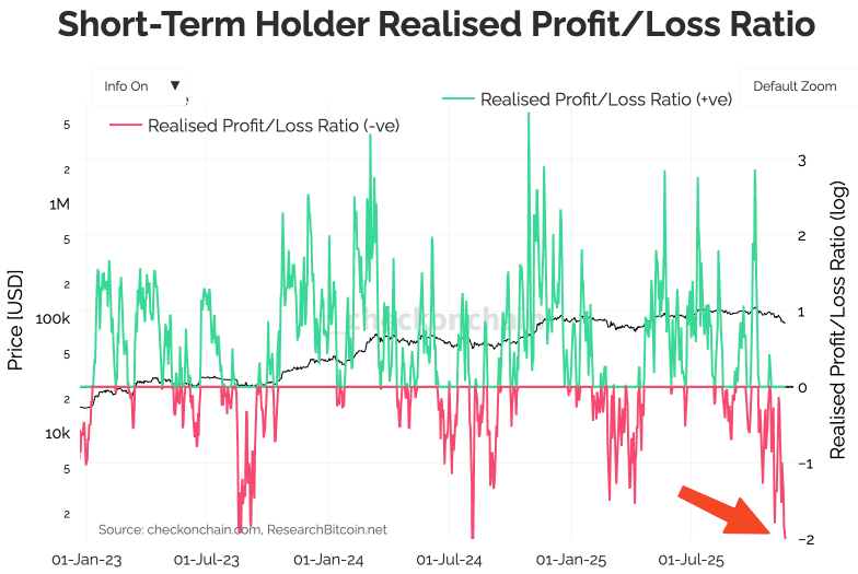 Bereits ein Blick in die On-Chain-Daten zeigt relativ klar, dass vor allem die Kurzzeithalter bereits stark kapituliert haben.