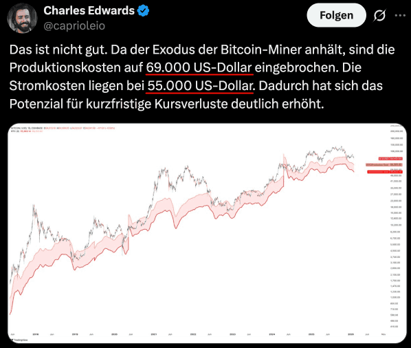 Aus der Perspektive der BTC-Miner sei laut Charles Edwards zudem die Range zwischen $55k und $69k relevant.
