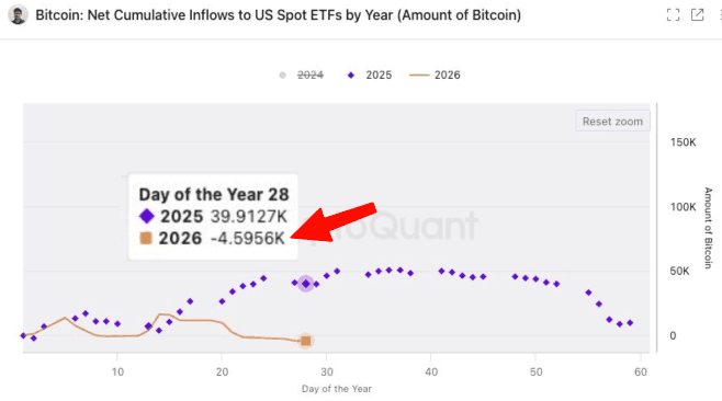 Die Zu- und Abflüsse der BTC-ETFs verlaufen bisher im Wesentlichen so, wie ich es auch in meinen Prognosen für 2026 vermutet hatte.