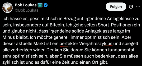 Auch Bob Loukas, der bisher einen sehr guten Track Record für das Timing der Zyklen hat, ist inzwischen auch eher bärisch eingestellt.