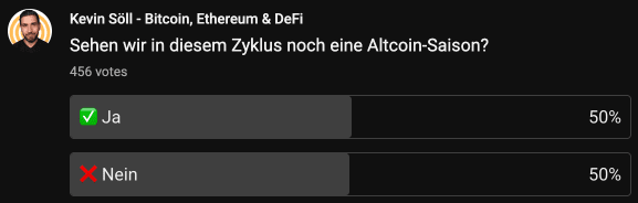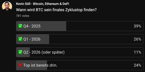 Der überwiegende Teil meiner Community (76%) ist dagegen weiterhin optimistisch, dass das finale Zyklustop bei BTC noch aussteht.