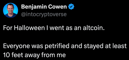 Die größte Chance für Altcoins ist ein neues ATH bei BTC und ETH. Wenn das nicht passiert, könnte die Altcoin-Saison komplett ausfallen.
