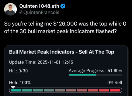 Während sich die Top-Signale häufen, wird auf Social Media noch immer Hopium vom Feinsten verbreitet. Hier ein paar unkommentierte Beispiele.
